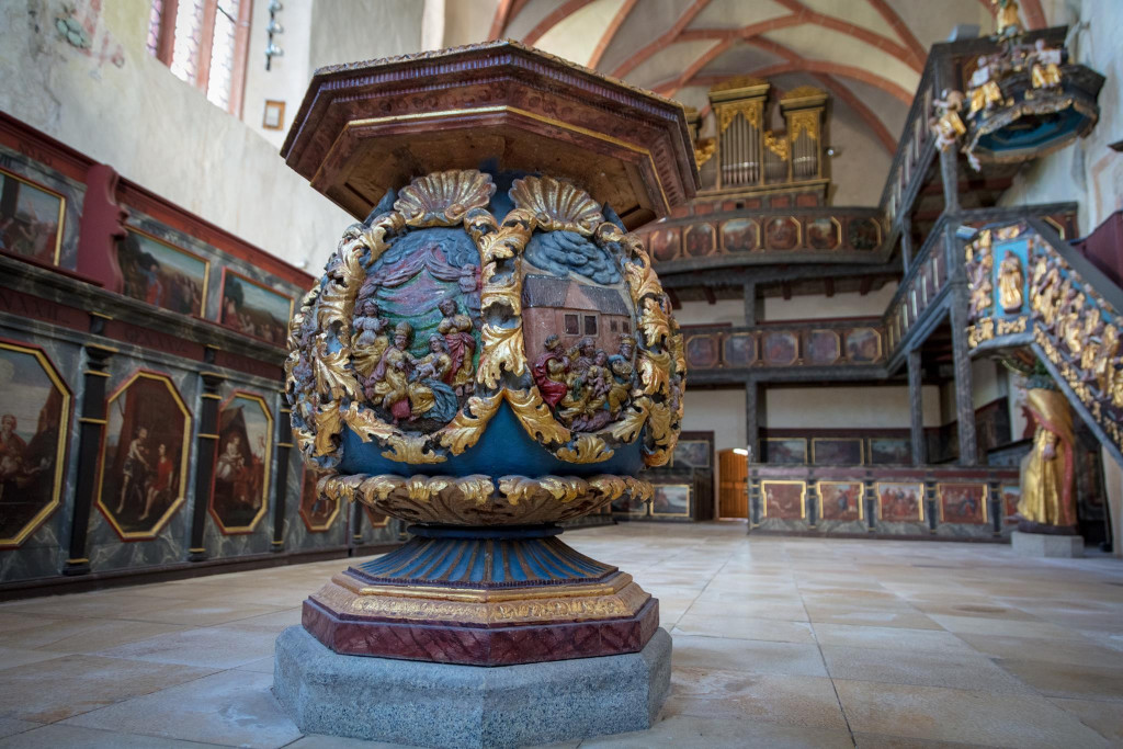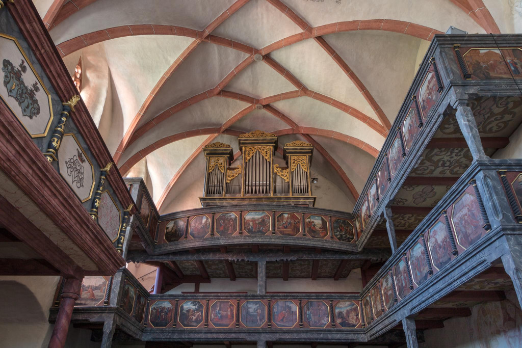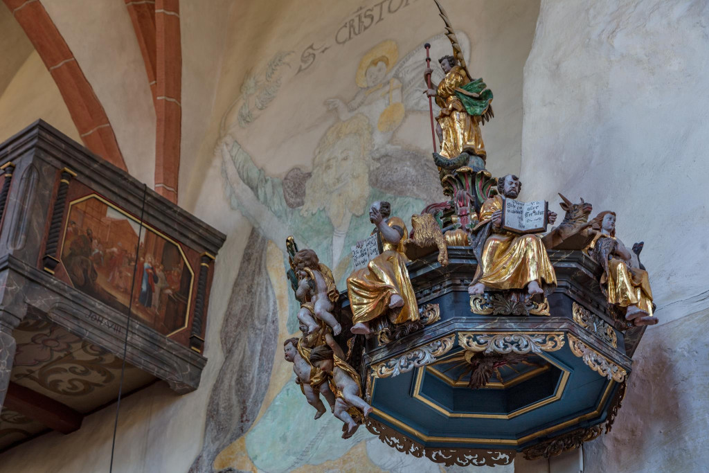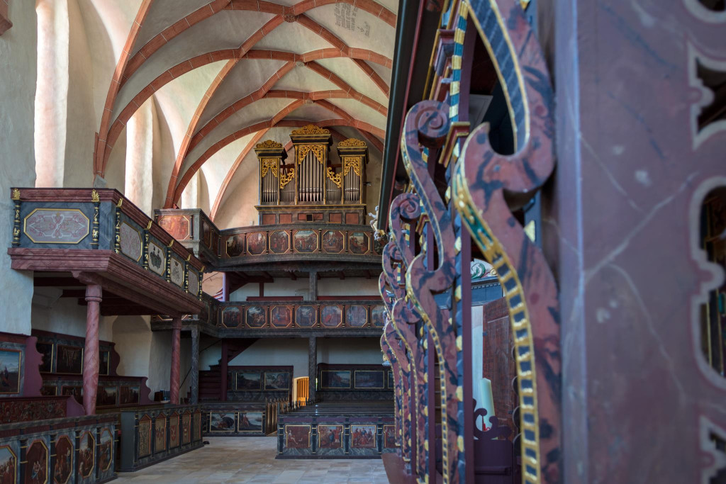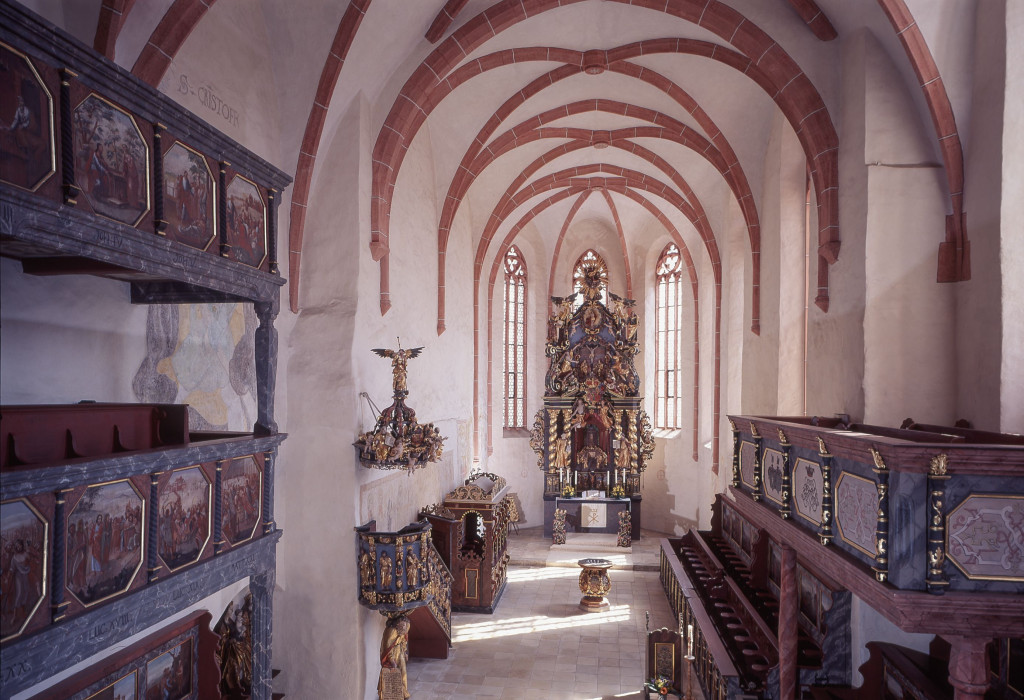 Im Zuge der Reformation wandelte sich die Kirche zu einer lutherischen Pfarrkirche, wobei der mittelalterliche Baukörper erhalten blieb. In der Barockzeit erfuhr das Innere jedoch eine umfassende Neugestaltung, die das heutige Erscheinungsbild entscheidend bestimmt. Die Ausstattung aus der Zeit um 1700 zeichnet sich durch eine ungewöhnliche stilistische Einheitlichkeit aus. Bereits 1687/88 wurden Emporen eingebaut, die typisch für protestantische Predigtkirchen sind und der verstärkten Beteiligung der Gemeinde am Gottesdienst dienten. Die Emporenbrüstungen wurden mit insgesamt 76 gemalten Szenen geschmückt, wodurch ein umfangreiches theologisches Bildprogramm entstand, das didaktische Funktionen erfüllte.