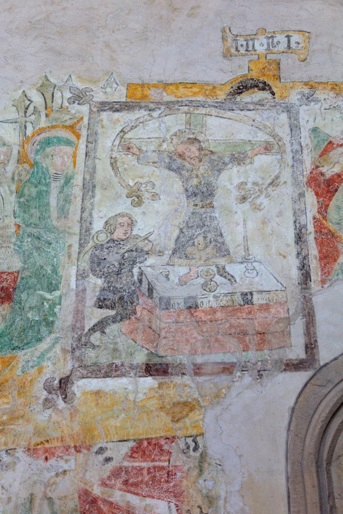 Von besonderer kunsthistorischer Bedeutung sind die erhaltenen Wandmalereien aus der Gotik. In der Kirche konnten mehrere übereinanderliegende Malschichten freigelegt werden, die eine ungewöhnlich dichte Bildüberlieferung dokumentieren. Insgesamt sind heute sechzehn figürliche Darstellungen oder Szenen bekannt, darunter Marienbilder, Heiligendarstellungen sowie eine seltene ikonographische Wiedergabe des Volto Santo mit dem sogenannten Spielmannswunder. Diese Fresken stammen überwiegend aus dem 15. Jahrhundert und spiegeln sowohl die spätmittelalterliche Frömmigkeit als auch die Bedeutung der Kirche als regionaler Wallfahrtsort wider. (Wikipedia)