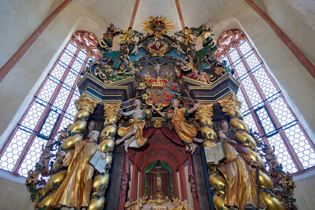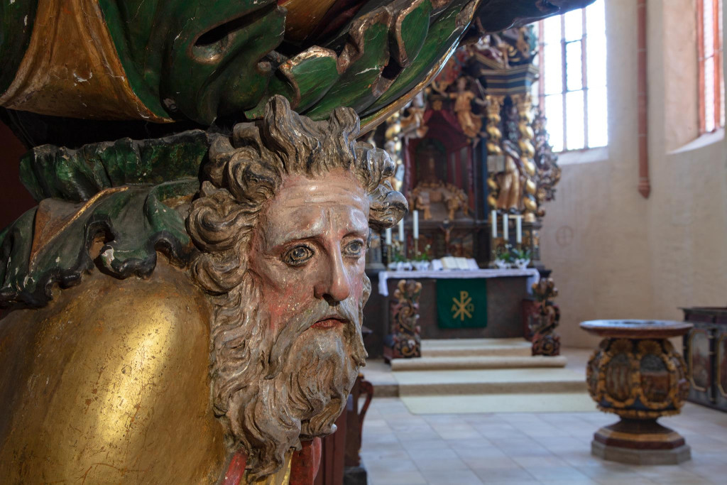Ein besonders bedeutendes Werk stellt der barocke Hochaltar dar, der 1710/11 vom Bayreuther Bildhauer Elias Räntz geschaffen wurde. Der Altar zeigt in einem zusammenhängenden ikonographischen Programm zentrale Stationen der Heilsgeschichte von der Abendmahlsszene bis zur Darstellung des auferstandenen Christus. Auch der reich gestaltete Kanzelaufbau fügt sich in dieses umfassende barocke Bildkonzept ein. Weitere Ausstattungsstücke sind eine barocke Taufe von 1719, ein spätgotischer Taufstein aus dem 15. Jahrhundert, ein Pfarrstuhl von 1692 sowie Holzfiguren eines ehemaligen Flügelaltars. Diese Objekte dokumentieren eindrucksvoll die Kontinuität kirchlicher Nutzung über mehrere Jahrhunderte hinweg.